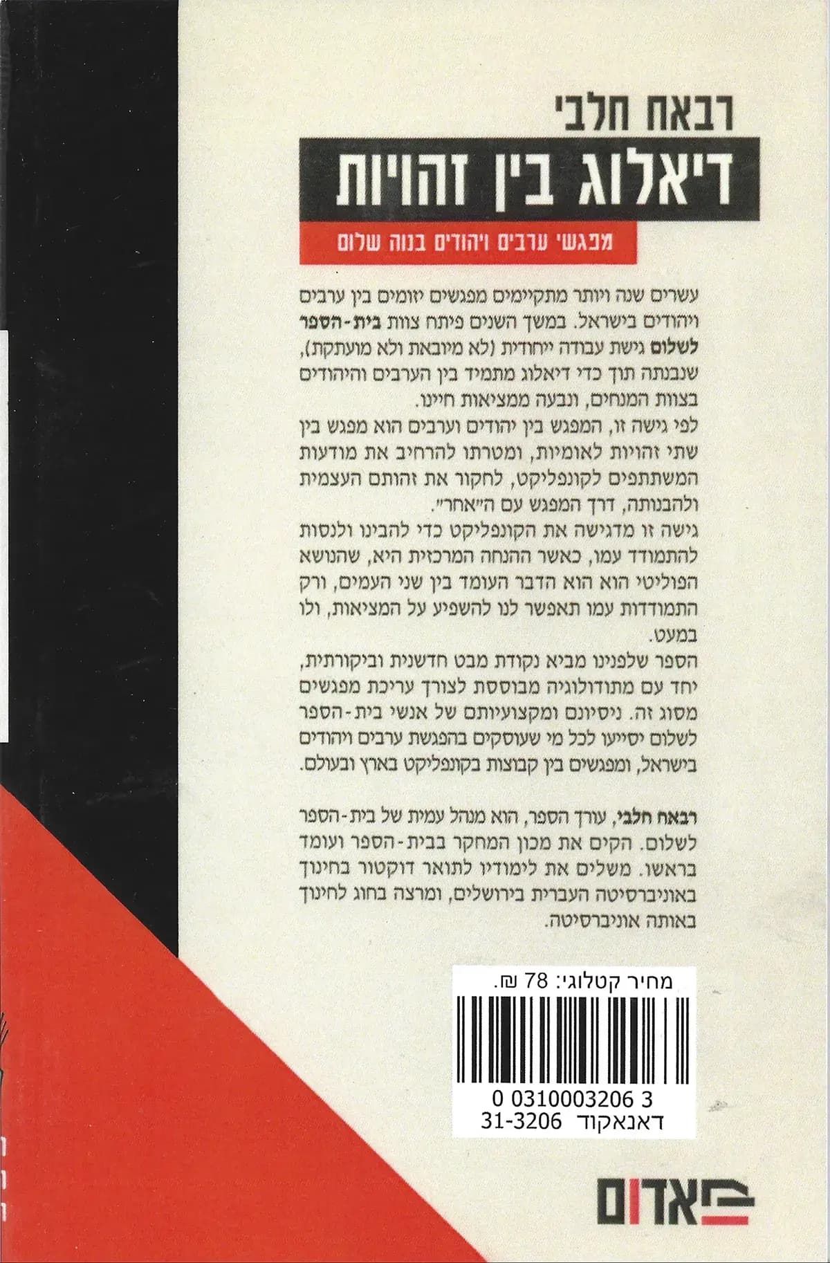 הספר 'דיאלוג בין זהויות' חותר להניע תהליך מעמיק של חקירה עצמית והכרת האחר בתוך המציאות המורכבת של הקונפליקט הישראלי פלסטיני. הגישה שפותחה בבית הספר לשלום ביישוב המשותף נווה שלום מדגישה כי המפגש הישיר בין זהויות לאומיות שונות אינו רק כלי להיכרות אישית, אלא זירה חיונית להרחבת המודעות לקונפליקט ולעיצוב הזהות העצמית מתוך הקשבה ודיאלוג מתמיד. במהלך עשרים השנה מאז החלו להיערך המפגשים היזומים בין ערבים ויהודים, פיתח צוות המנחים שיטת עבודה ייחודית שנבנתה מתוך מציאות החיים המקומית ועל בסיס שיתוף פעולה מקצועי בין אנשי צוות משני העמים.