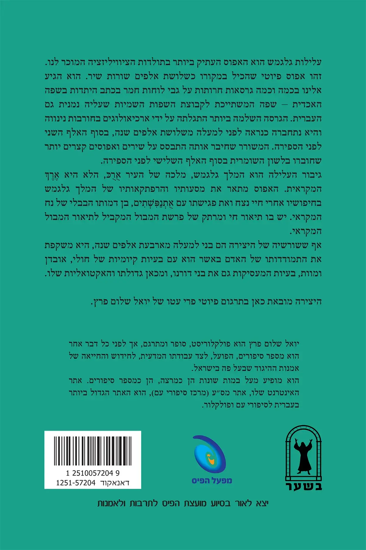 יצירת המופת 'עלילות גלגמש' נחשבת לאבן היסוד של הספרות העולמית ולאפוס הקדום ביותר בתולדות הציוויליזציה. העלילה עוקבת אחר גלגמש, מלכה האגדי של העיר ארכ, שיוצא למסע הרפתקאות רצוף סכנות במטרה למצוא מזור לכאב ולאובדן ולגלות את סוד חיי הנצח. לאורך דרכו הוא פוגש את אתנפשתים, דמות המקבילה לנח המקראי, ודרכו נחשף הקורא לתיאור חי ומרתק של פרשת המבול כפי שנתפסה במסורת הבבלית והשומרית הקדומה.