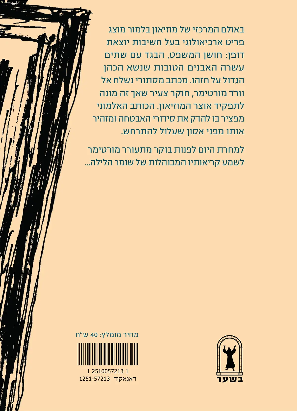 במרכז הסיפור 'תעלומת חושן המשפט' עומד פריט היסטורי בעל משמעות דתית וארכיאולוגית עצומה, חושן המשפט המשובץ שתים עשרה אבנים טובות כפי שנשא הכהן הגדול במקדש. וורד מורטימר, חוקר צעיר ונמרץ שזה עתה מונה לתפקיד אוצר מוזיאון בלמור, מוצא את עצמו נשאב לתוך מסכת של אירועים מדאיגים זמן קצר לאחר כניסתו לתפקיד. הכל מתחיל במכתב אנונימי המגיע לשולחנו, ובו הפצרה דחופה להדק את סידורי האבטחה ואזהרה מפני אסון ממשמש ובא שעלול להכות במוזיאון ובמוצג היקר ביותר שבו.