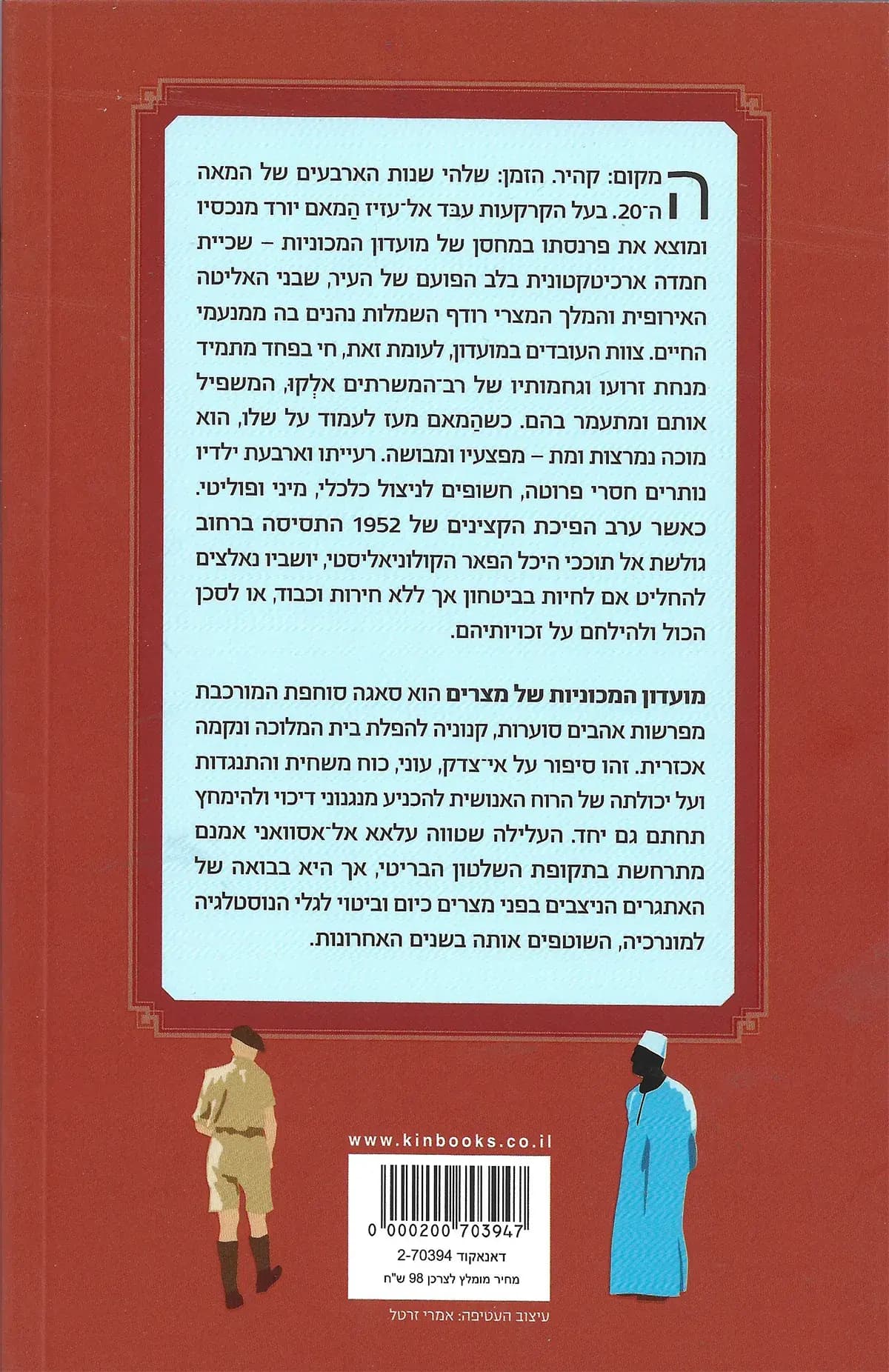 הרומן 'מועדון המכוניות של מצרים' לוקח את הקוראים אל קהיר של אמצע המאה העשרים, תקופה שבה המלוכה המצרית והשלטון הקולוניאלי הבריטי עיצבו את פניה של המדינה. במרכז העלילה עומד מועדון המכוניות היוקרתי שבו מצטלבים חייהם של עובדי המקום קשי היום עם אלו של האליטה המושחתת והשליטים הזרים. עלאא אל-אסוואני טווה במיומנות סיפור המורכב מפרשות אהבים סוערות, תכנונים חשאיים להפלת בית המלוכה וגילויי נקמה אכזריים הממחישים את הפער הבלתי נסבל בין עושר מופלג לעוני מחפיר ומדכא.